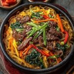 Sweet and savory flavors mingle with the delightful chewiness of glass noodles, while vibrant vegetables add a pop of color to each bite of Authentic Korean Japchae Noodles. The aroma wafts through the kitchen, promising a meal that’s as comforting as it is exciting.