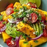 Bright, vibrant colors dance on your plate as you combine creamy avocados and sweet, juicy mangoes, all brought together with a zesty lime dressing that tickles your taste buds. The crunch of fresh veggies adds an exciting texture, making every bite a delightful experience.