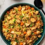 Der beste gebratene Reis mit Hühnchen vereint süße, salzige und umami-reiche Aromen mit knackigem Gemüse und zartem Hühnchen für ein vollmundiges Geschmackserlebnis. Ideal als Resteverwertung aus der asiatischen Küche.