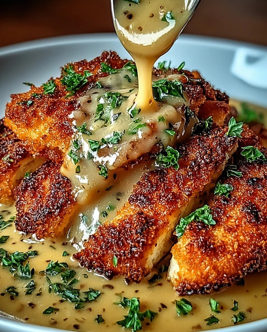 Crispy Parmesan Chicken with a Rich Garlic Sauce – Easy Dinner Idea | Delectable Meal