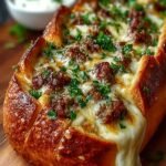 To serve, slice the loaf into chunky pieces and watch as the molten cheese stretches with each pull. Garnish with freshly chopped parsley for that restaurant-grade look, and enjoy immediately for the ultimate Cheesesteak-Stuffed Garlic Bread Loaf: Comfort Food Bliss experience!