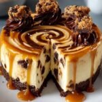 Leckeres cookie dough cheesecake mit salted caramel swirl Rezept mit detaillierten Anweisungen und Nährwertangaben.