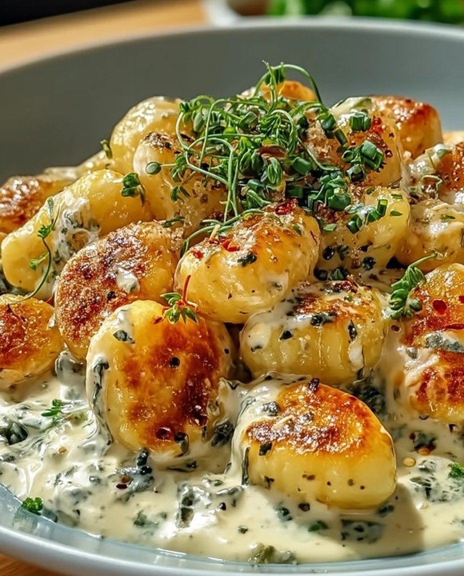 Meanwhile, cook your gnocchi according to package instructions (usually around 2-3 minutes). Once they float to the top, they’re ready! Drain them well before gently folding them into your creamy sauce.