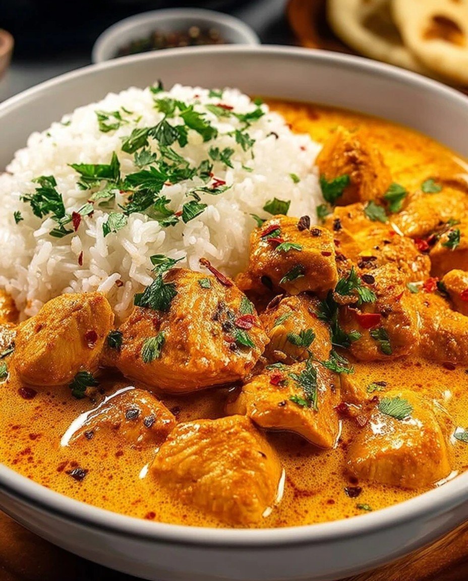Creamy, velvety sauce envelops tender chicken pieces, creating a dish that is rich and comforting, with a tantalizing blend of spices that dance on your palate. The aroma wafts through the kitchen, promising warmth and satisfaction, and you can’t help but feel cozy just thinking about it.