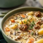 Eines Tages bereitete ich diese cremige Kartoffel-Wurst-Cremesuppe mit würziger Note für Freunde zu. Das Lachen und die Komplimente waren unbezahlbar – ein echter Hit!