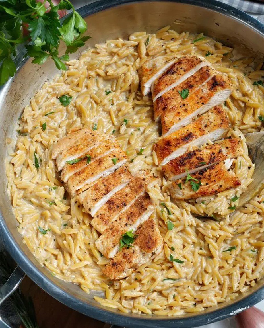 Cremige One Pot Orzo Pasta mit Hähnchenbrust Rezept