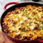 Dieser cremige Hackfleischauflauf vereint zartes Hackfleisch, karamellisierte Zwiebeln und geschmolzenen Frischkäse zu einem herzhaften Familiengericht. Mit einer goldenen Käsekruste und einer harmonischen Textur ist er perfekt für gesellige Abende.