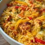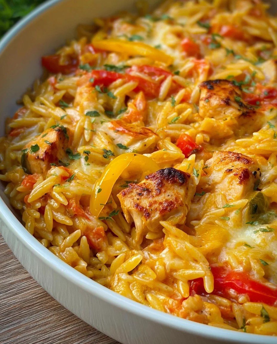Lernen Sie dieses einfache Gericht mit Paprika Sahne Hähnchen und Orzo Nudeln aus dem Ofen kennen. Dieses Gericht liefert intensiven Geschmack und ist perfekt für ein schnelles Abendessen. Speichern Sie dies für später