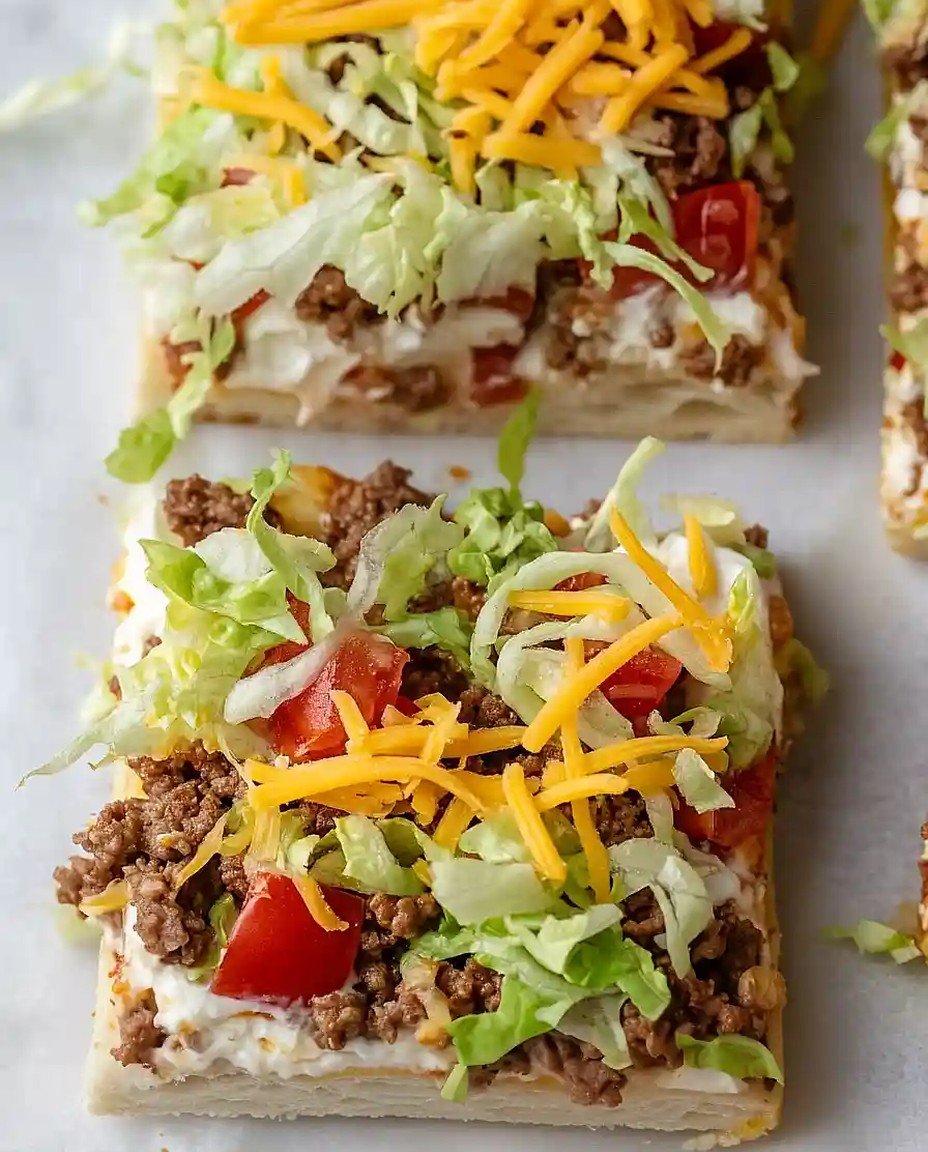 Crescent Roll Taco Pizza auf einem knusprigen Teigboden – Das perfekte Rezept für einen Taco-Pizza-Spaß!
