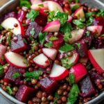 Dieser super leckere Rote Bete Linsen Salat ist einfacher zu machen als du denkst! Er ist mega gesund und versorgt dich mit wichtigen Sachen damit du fit bleibst. Egal ob du schnell was leckeres für Mittag brauchst oder fürs Meal Prep vorkochst – dieser vegetarische Salat Mix macht dich happy. Mit süßlicher Rote Bete und sättigenden Linsen ist er einfach perfekt. Probier ihn aus und mach ihn zu deinem neuen Lieblingssalat fürs Büro oder für zu Hause!