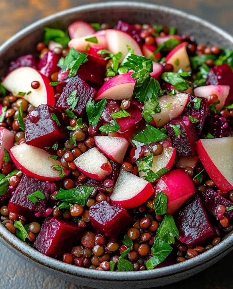 Vollständige Zubereitungsmethode Du musst diesen Rote Bete Linsen Salat probieren