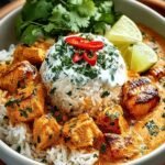 The aroma of tender chicken simmering in creamy coconut milk fills the air, while fragrant jasmine rice absorbs every drop of flavor, creating a dish that’s an explosion of tropical delight. Each bite is a delightful balance of savory and slightly sweet, with just the right hint of crunch from fresh veggies.