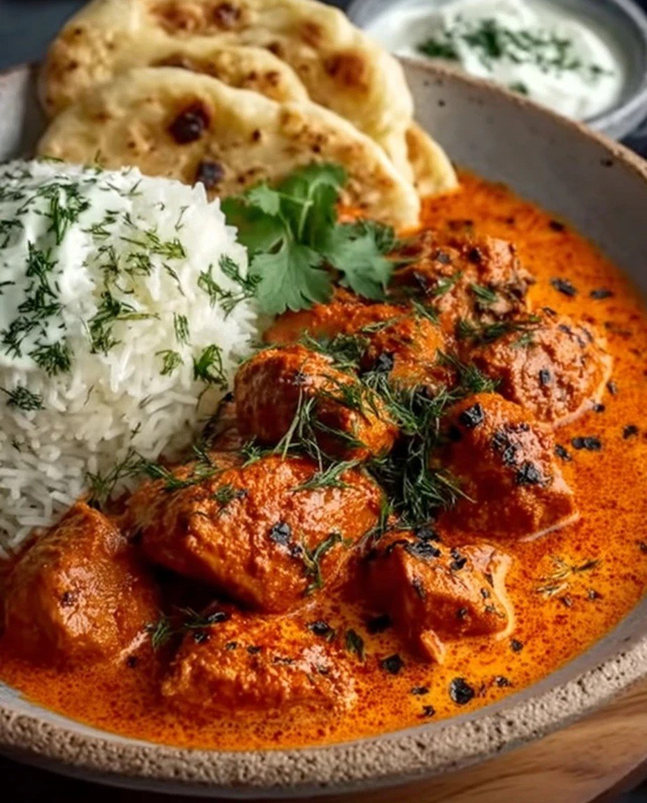 The aroma of spiced chicken simmering in a creamy, tomato-based sauce wafts through the air, promising a symphony of flavors that dance on your palate. Each bite is a delightful blend of warmth and comfort, with tender chicken enveloped in a rich, velvety sauce that’s just begging to be scooped up with warm naan.