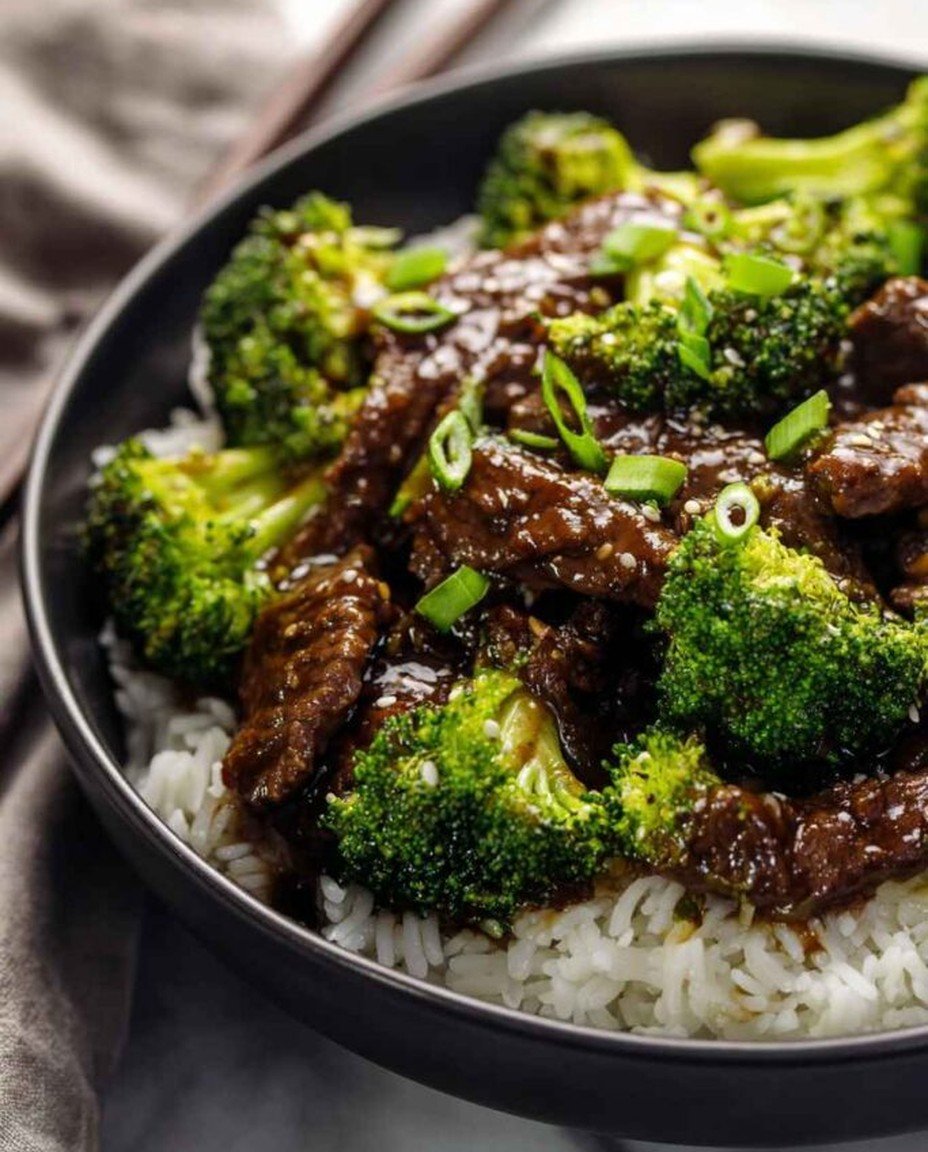 **Servieren:** Servieren Sie das Rindfleisch und den Brokkoli heiß über gedämpftem Reis oder Quinoa. Garnieren Sie das Gericht nach Belieben mit geröstetem Sesam und Frühlingszwiebeln für zusätzlichen Geschmack und Farbe.