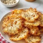 Diese knusprigen Cottage Cheese Chips mit Alles Bagel Gewürz vereinen herzhaftes Gewürz und cremigen Käse für ein einzigartiges Geschmackserlebnis. Ideal zum Snacken und anpassbar nach Belieben.