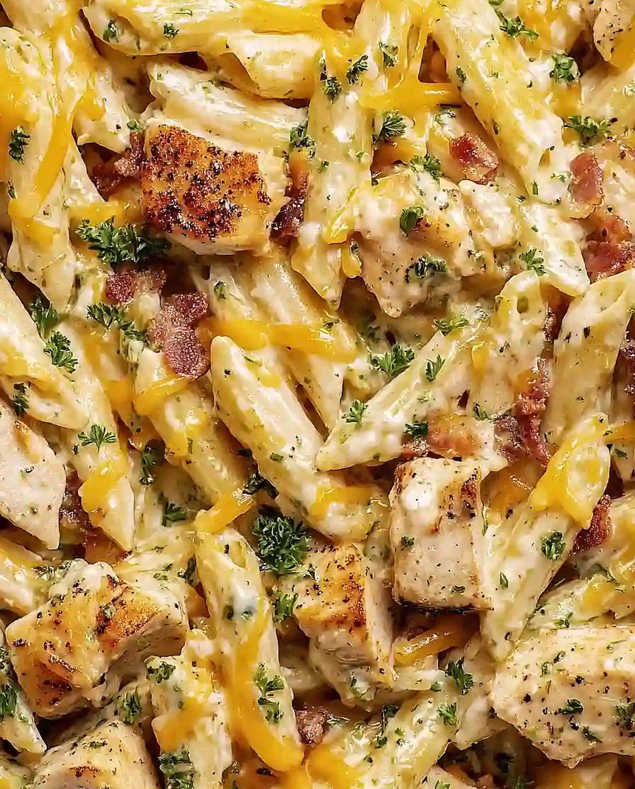 Eine cremige Pasta mit zartem Hühnchen und frischen Kräutern, verfeinert mit Knoblauch und Parmesan. Dieses Gericht vereint Geschmack und Optik und ist ideal für jedes Familienessen.