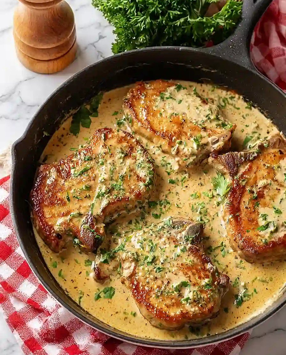 Genießen Sie Ihre Einfachen cremigen Knoblauch-Schweinekoteletts (aus einer Pfanne) – jeder Bissen wird Ihnen ein Lächeln ins Gesicht zaubern!