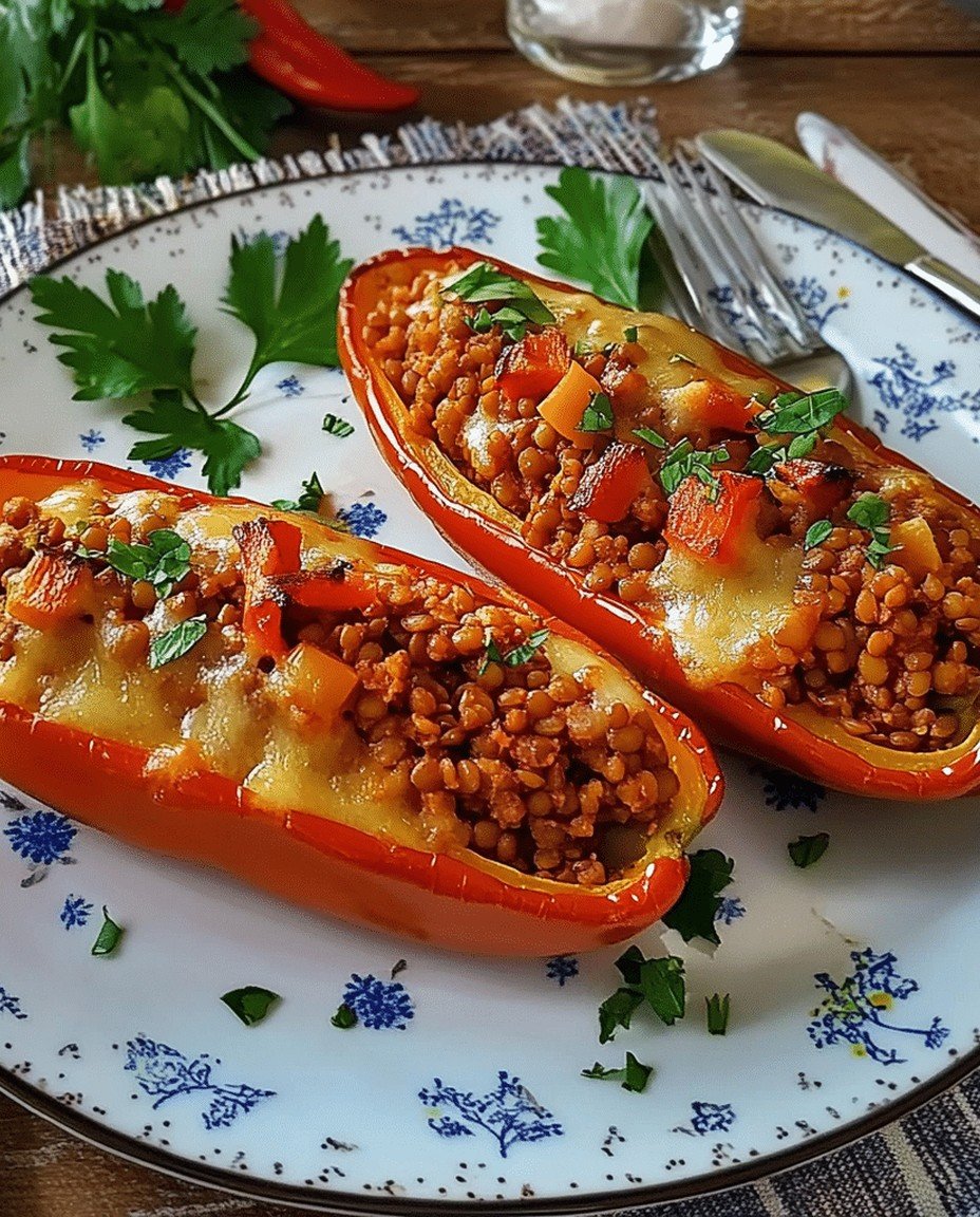 Gefüllte Spitzpaprika mit roten Linsen – vegetarisch genießen
