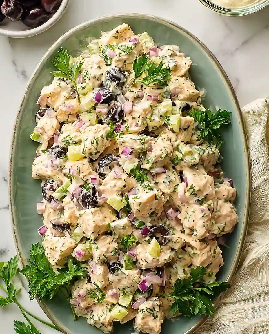 Diese glutenfreie mediterrane Hähnchensalat-Delikatesse vereint frisches Gemüse, zartes Hähnchen und aromatische Kräuter zu einem Fest der Aromen. Einfach und vielseitig, ideal für jeden Anlass.