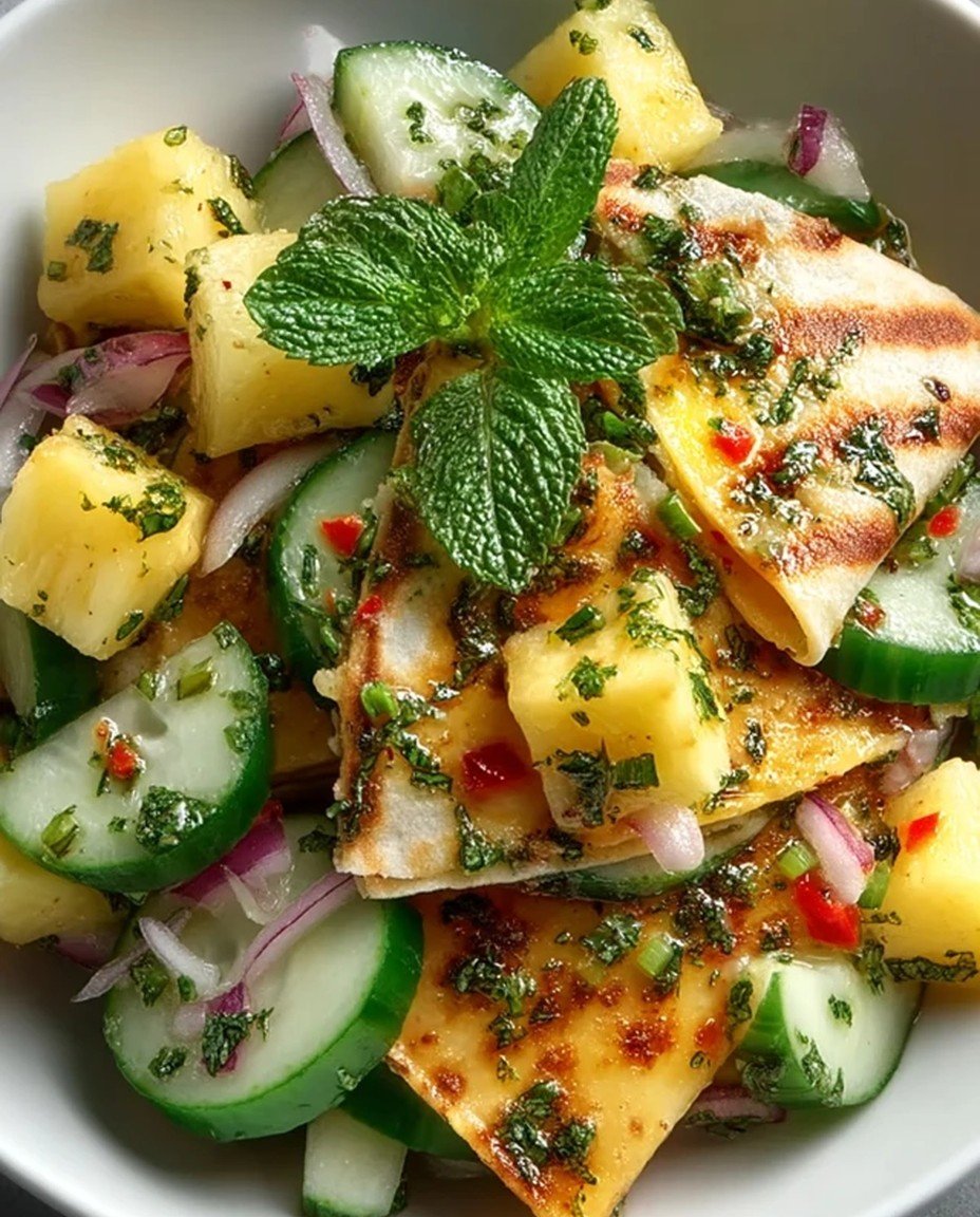 Serving: Serve the grilled Mediterranean veggie quesadillas hot, sliced into wedges, with a side of tzatziki or salsa for dipping. Garnish with fresh herbs like parsley or basil for an extra touch.