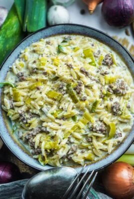 - Zwiebeln Eine mittelgroße Zwiebel, fein gehackt, liefert eine aromatische Süße, die sich beim Anbraten entwickelt und dem Gericht Tiefe verleiht.