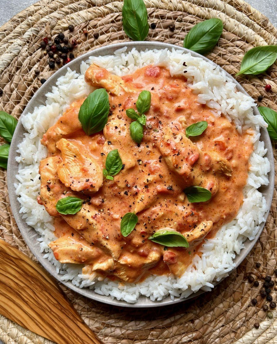 Dieses Gericht ist ein wahrer Küchen-Champion, der mit seiner unkomplizierten Zubereitung punktet, die selbst Kochanfängern mühelos gelingt. Es zeichnet sich durch ein einzigartiges Geschmacksprofil aus, eine harmonische Melange aus süßlichen Tomaten, würzigen Kräutern und saftigem Hähnchen, abgerundet durch den duftenden Reis. Optisch ist es eine wahre Augenweide; die lebendigen Farben machen es zum strahlenden Mittelpunkt jeder Tafel. Darüber hinaus ist es unglaublich vielseitig und lässt sich wunderbar mit frischen Gemüsesorten oder anderen Kräutern anpassen, was es zu einer flexiblen Option für jede Geschmacksrichtung macht und dabei stets leicht und sättigend bleibt.