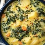Die herzhafte Kartoffel-Grünkohl-Suppe vereint zarte Kartoffeln und frischen Grünkohl für ein wärmendes Geschmackserlebnis. Diese Suppe ist einfach zuzubereiten und bietet eine cremige Konsistenz sowie eine leuchtend grüne Farbe, die sie optisch ansprechend macht.