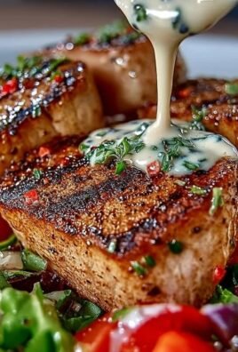 Tuna Steaks with Creamy Garlic Sauce & Salad: A Gourmet Dinner Experience
