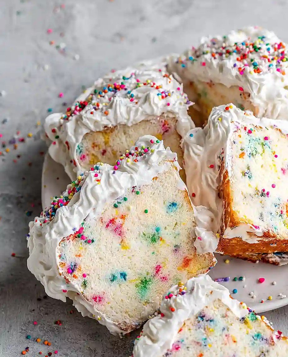 Dieser wolkenleichte Funfetti-Kuchen vereint süße Vanille mit bunten Streuseln und einer luftigen Textur. Ein echter Hingucker für jede Feier, der einfach zuzubereiten ist und Freude in jeden Bissen bringt.