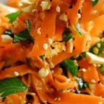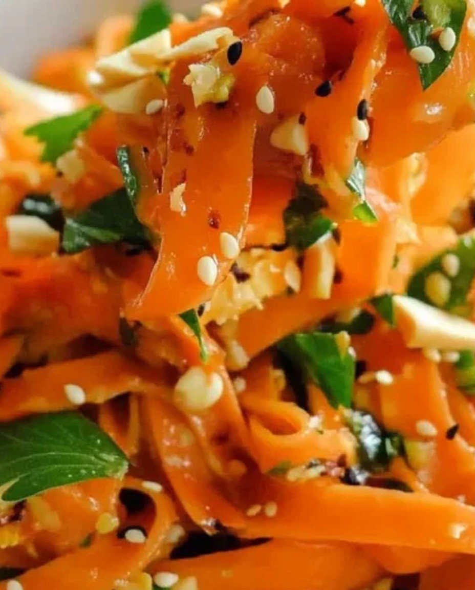 Entdecken Sie den erfrischenden Geschmack dieses Karottensalats der mit einem aromatischen Ingwer-Sesam-Dressing verfeinert ist. Dieser einfache und würzige Salat ist nicht nur ein gesundes Mittagessen sondern auch eine großartige Beilage für jedes Gericht. Die Kombination aus knackigen Karotten und dem intensiven Dressing sorgt für ein Geschmackserlebnis das Sie nicht missen möchten. Ideal für Meal Prep oder als leichter Snack zwischendurch.