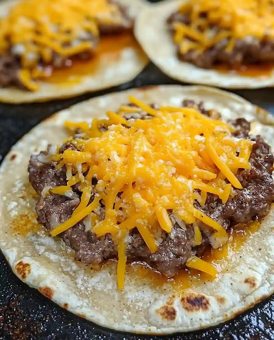 Serviervorschlag: Genießen Sie diese Tacos noch warm, wenn der Käse schön schmilzt und sich perfekt mit der herzhaften Füllung verbindet.