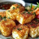 Crispy Feta ist ein knuspriger würziger Snack perfekt als Beilage Vorspeise oder Salattopping. Der Feta wird paniert goldbraun gebraten und bleibt innen cremig. Ein einfaches schnelles Rezept für Käseliebhaber – ideal für mediterrane Küche leichte Snacks oder Mezze-Platten. 🧀✨#feta #crispyfeta #käsesnack