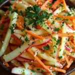 Dieser erfrischende Kohlrabi-Karotten-Apfel-Salat ist mehr als nur eine Beilage; er ist ein Fest für die Sinne und eine Wohltat für Ihren Körper. Genießen Sie die knackige Textur von frisch geraspeltem Kohlrabi und Karotten, die sich perfekt mit der süß-säuerlichen Note des Apfels verbindet. Jeder Bissen liefert wichtige Vitamine und versorgt Sie mit leichter Energie, ohne zu beschweren. Es ist die ideale Wahl für alle, die Wert auf eine bewusste Ernährung legen und dennoch keine Kompromisse beim Geschmack eingehen möchten. Zögern Sie nicht länger: Probieren Sie diesen köstlichen Kohlrabi-Karotten-Apfel-Salat – gesund, schnell & kalorienarm genießen Sie ihn am besten noch heute und lassen Sie sich von seiner Einfachheit und Frische verzaubern!