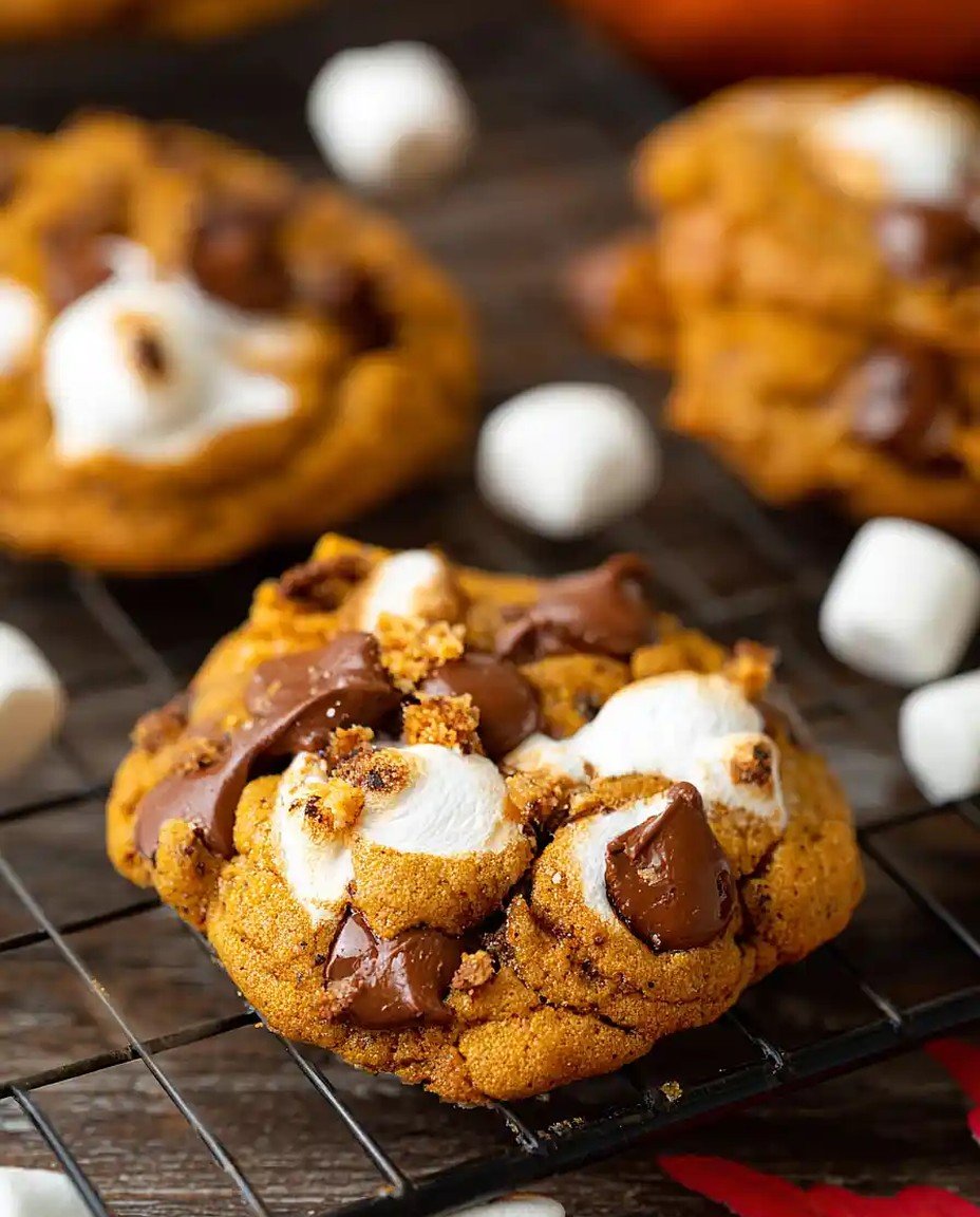 Servieren Sie die Köstlichen Kürbis S’Mores Kekse warm oder bei Raumtemperatur. Das Zusammenspiel von warmem Keks und schmelzender Schokolade bietet ein unvergleichliches Erlebnis!