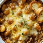 Die überbackenen französischen Zwiebel-Gnocchi sind ein Geschmackserlebnis mit karamellisierten Zwiebeln, zartem Hühnchen und geschmolzenem Käse. Ein optischer Hingucker mit goldenen Gnocchi und einem harmonischen Geschmacksprofil, das einfach zuzubereiten ist.