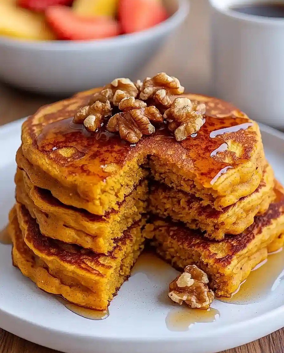 Diese Kürbis-Pfannkuchen sind einfach zuzubereiten und bieten eine zarte Süße mit einer cremigen Textur. Perfekt für ein gemütliches Frühstück, lassen sie sich individuell anpassen mit Nüssen oder frischen Früchten.