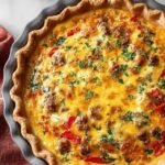 Diese leckere Quiche mit gerösteten roten Paprika und Wurst vereint süße und herzhafte Aromen in einer cremigen Füllung. Die knusprige Kruste sorgt für ein rundum befriedigendes Geschmackserlebnis, ideal für jedes Frühstück.