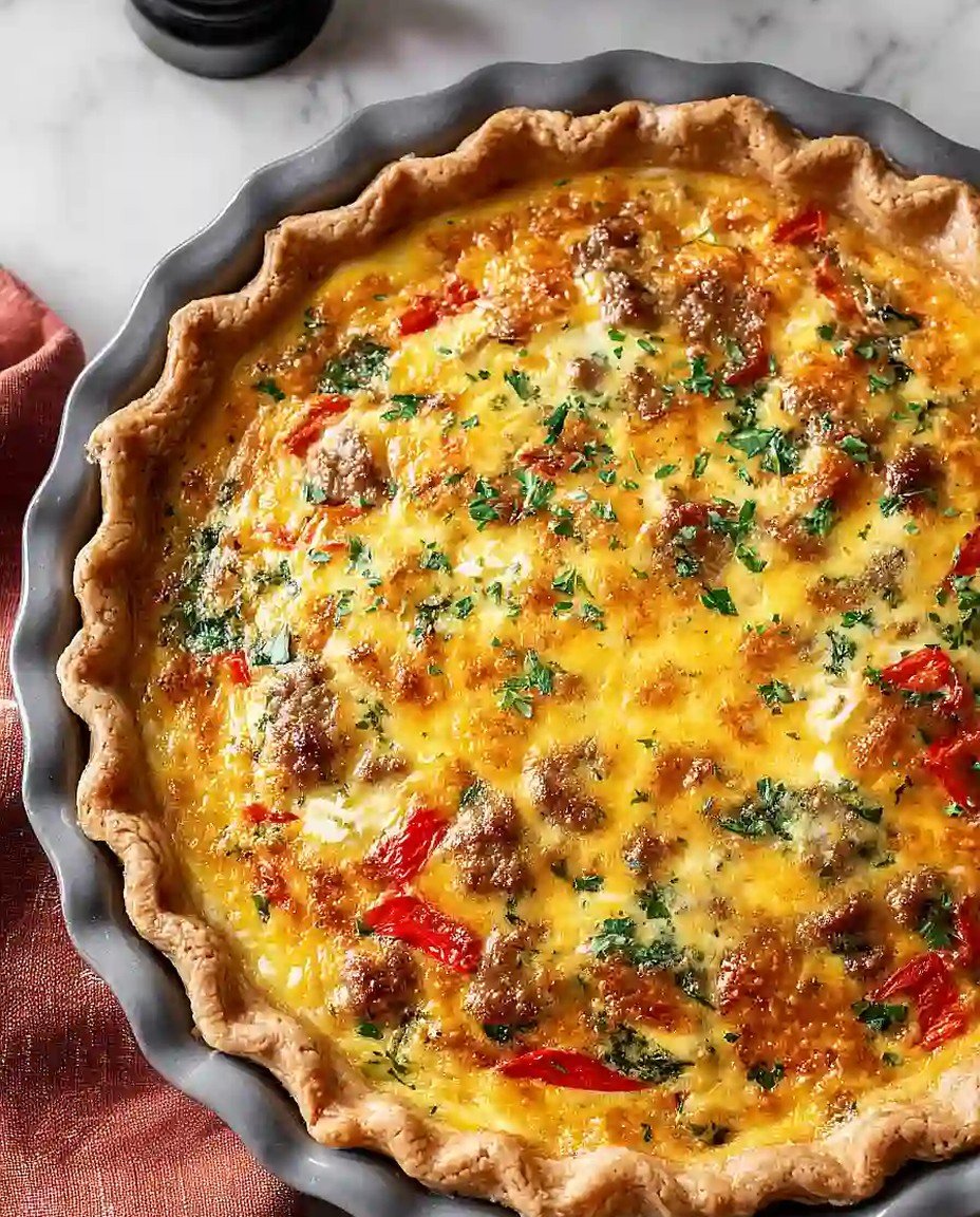 Leckere Quiche mit gerösteten roten Paprika und Wurst – Einfaches Rezept für ein herzhaftes Frühstück