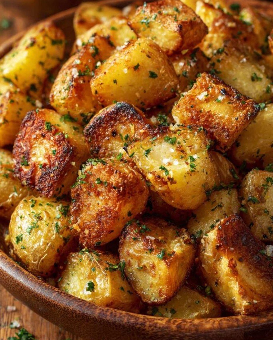 Genießen Sie die goldbraunen Röstkartoffeln, die mit frischen Kräutern und Gewürzen verfeinert sind. Die Kombination aus knuspriger Textur und dem Aroma von geröstetem Knoblauch macht dieses Gericht zu einem unverzichtbaren Genuss.