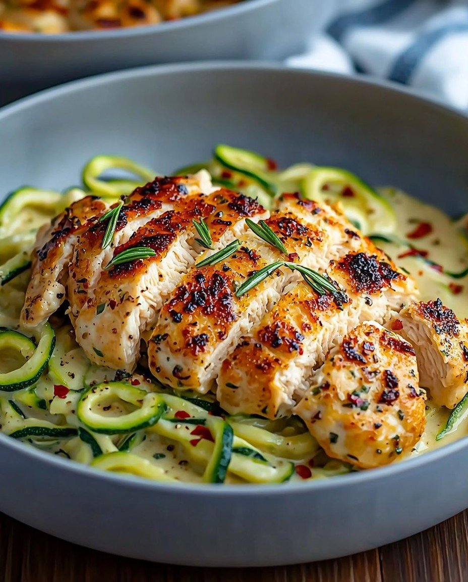 Low Carb Zoodles Alfredo: Proteinreich mit Hähnchen & viel Gemüse