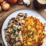Lagerung: Für beste Textur die Rösti und die Zwiebel-Pilzrahmsoße getrennt aufbewahren. Die Soße kann in einem luftdichten Behälter bis zu 2-3 Tage im Kühlschrank gelagert werden. Gekühlte Rösti sollten möglichst schnell verzehrt werden, da sie an Knusprigkeit verlieren.