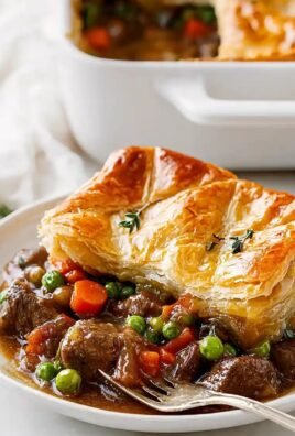 Die goldene Kruste des Nudel-Hühnchen-Topf-Pie-Auflaufs glänzt verführerisch, während der Duft von zartem Hühnchen und würzigen Kräutern den Raum erfüllt. Jeder Bissen vereint die Cremigkeit einer herzhaften Füllung mit dem knusprigen Charakter eines perfekt gebackenen Teigs – ein wahres Fest für die Sinne!