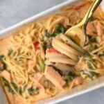 Kochtipp: Achten Sie darauf, den Lachs nicht zu lange zu garen, damit er saftig bleibt und nicht trocken wird. Die kurze Pasta sollte beim Vorkochen wirklich nur “al dente” sein, da sie im Ofen noch etwas Flüssigkeit aufnimmt und nachgart.