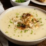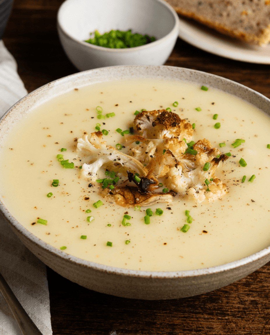 Eine cremige Blumenkohlsuppe, die mit geröstetem Blumenkohl, Kartoffeln und aromatischen Gewürzen zubereitet wird. Ihre samtige Textur und der milde, würzige Geschmack versprechen sofortige Behaglichkeit und wecken warme Erinnerungen. Ein einfaches, herzhaftes und nahrhaftes Gericht, das sowohl einfach zuzubereiten als auch vielseitig ist, perfekt für die ganze Familie.