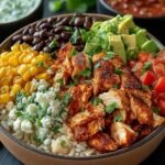 Chef’s Tip: For added flavor, marinate the chicken in lime juice and spices for 15-30 minutes before cooking. This enhances the chicken’s taste and tenderness. Additionally, feel free to customize the bowl with your favorite toppings like jalapeños, sour cream, or corn.