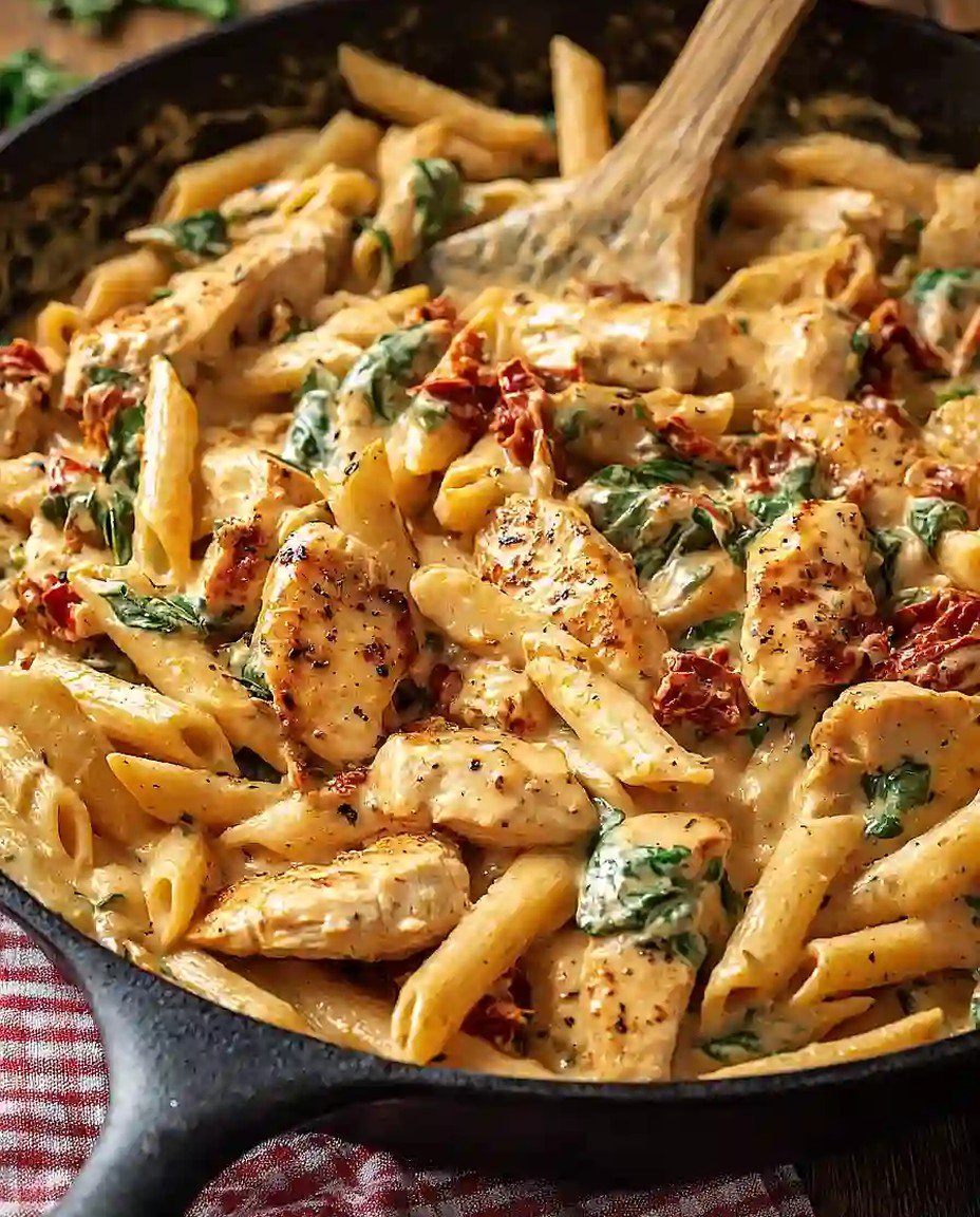 Die Parmesan Heiratsantrag Hühnchen Pasta kombiniert nussigen Parmesan mit zartem Hühnchen und frischen Kräutern. Sie begeistert durch ihre cremige Sauce und die harmonische Balance der Aromen, die jedem Gericht eine besondere Note verleiht.