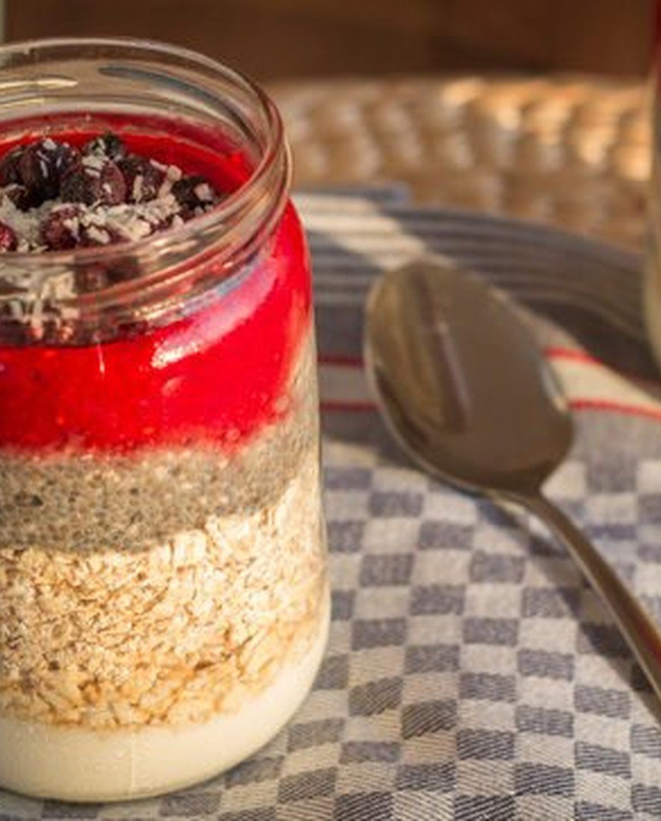 Zutaten für Schnelle Overnight Oats mit Chiapudding und Fruchtmus » beVegt