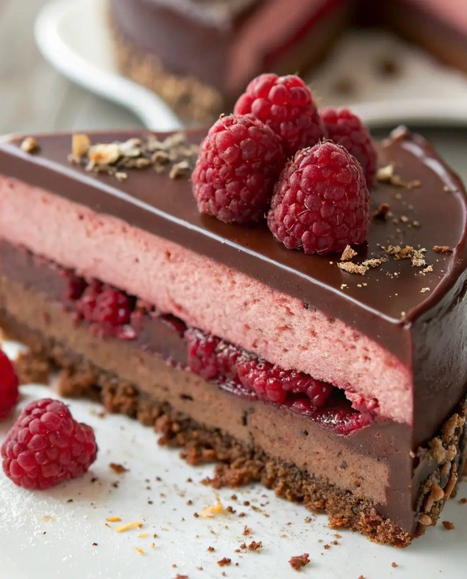 Schokoladen Himbeer Mousse Torte – Cremig fruchtig & edel! Diese Schokoladen Himbeer Mousse Torte kombiniert cremige Schokoladenmousse mit fruchtig-frischen Himbeeren und einer zarten Glasur. Ein elegantes Dessert das perfekt für besondere Anlässe Geburtstage oder Feiern ist. #SchokoladenTorte #HimbeerLiebe #MousseTorte #KreativeGerichte #DessertRezepte #Backliebe #Festtagsrezepte