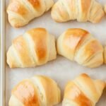 Servieren: Servieren Sie die Croissants warm, idealerweise gleich nach dem Backen. Sie können sie pur genießen oder mit Marmelade, Butter oder Käse füllen für ein besonderes Frühstück oder Brunch.