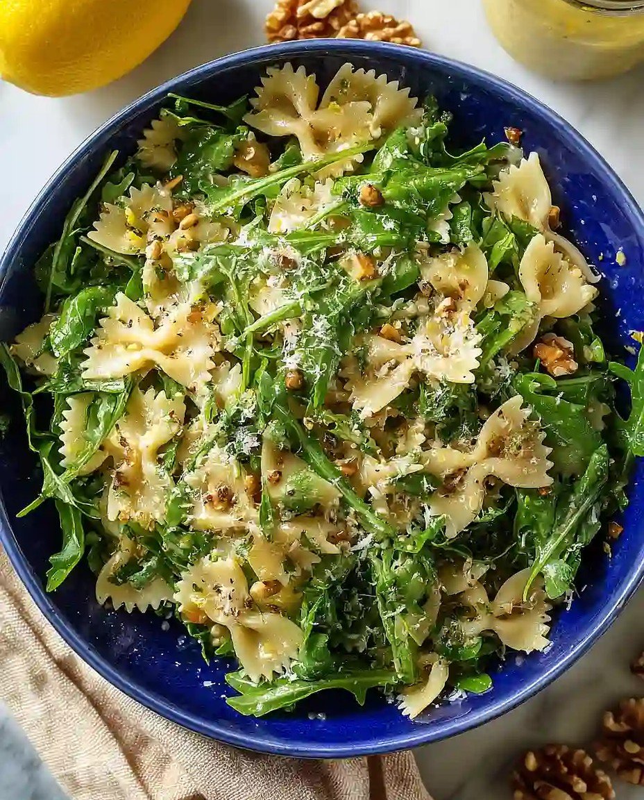 Ein erfrischender Nudelsalat mit spritzigem Zitronenaroma, pfeffrigem Rucola und al dente Nudeln. Die leichte Schärfe des Rucolas und die frische Zitrone machen diesen Salat zu einem unwiderstehlichen Geschmackserlebnis. Ideal als Beilage oder leichtes Hauptgericht.